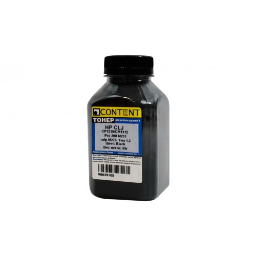Тонер Content для HP CLJ CP1215/CM1312/Pro 200 M251/mfp M276, Тип 1.2, Bk, 55 г, банка арт.:1010100405