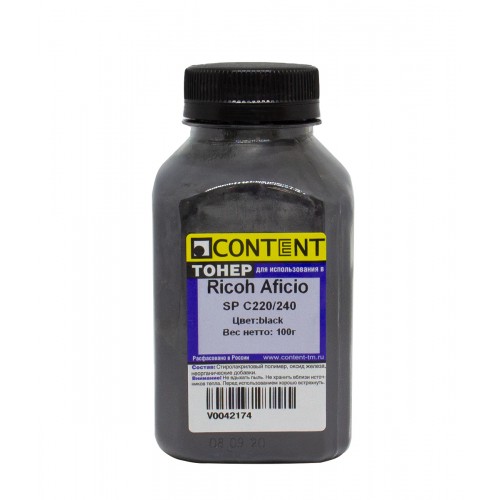 Тонер Content для Ricoh Aficio SP C220/240, Bk, 100 г, банка арт.:9802503333 Ricoh Aficio SP C220N, SP C221N, , SP C222DN, SP C240DN, SP C240SF, SP C250DN, SP C260DN, SP C261DNw