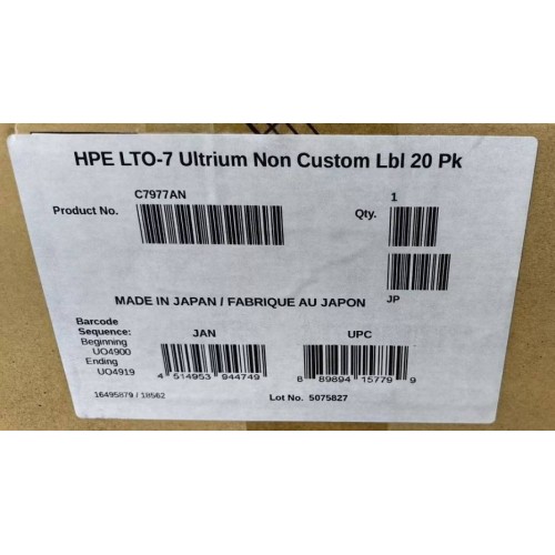 HP Картриджи данных Hewlett-Packard Ultrium LTO7 data cartridge, 15TB RW (20*C7977L) арт.:C7977AN HPE LTO‑7 Ultrium Non Custom Labeled Library Pack 20 Data Cartridges with Cases. Аналог 20шт C7977AL