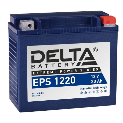 Стартерный мото аккумулятор Delta EPS 1220 12В/24Ач, клемма Болт + гайка Ø 6 мм (205х87х162мм (167мм); 7,74кг; Срок служ арт.:3401010090008