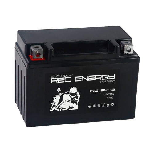 Delta Стартерный мото аккумулятор (RED ENERGY) RS 1209 12В/9Ач, клемма Болт + гайка Ø 6 мм (150х86х107мм (112мм); арт.:3401070030006