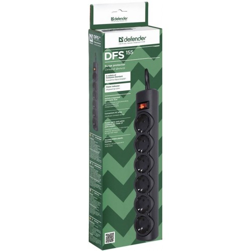 Defender Сетевой фильтр DFS 155, черный, 6 розеток, 5 м. арт.:99496