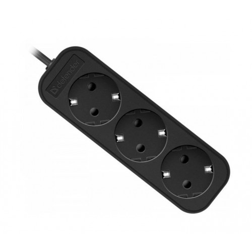 Defender Удлинитель с заземлением M318 1.8 м, 3 розетки, черный арт.:99321