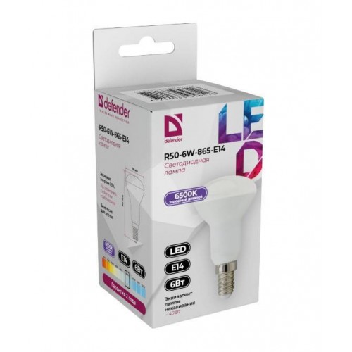 • Defender Лампочка светодиодная R50-6W-865-E14 рефлектор, 6500 К, холодный дневной,1шт арт.:95511