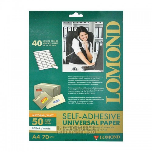 Самоклеящаяся бумага LOMOND универсальная для этикеток, A4, 16 делен. (105 x 37 мм), 70 г/м2, 50 листов арт.:2100125