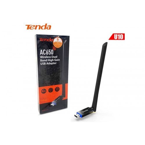 Tenda U10 Двухдиапазонный Wi-Fi адаптер, 2, 4/5 ГГц, до 633 Мбит/с, передатчик 20 dBm, подключение USB, 1х6dBi