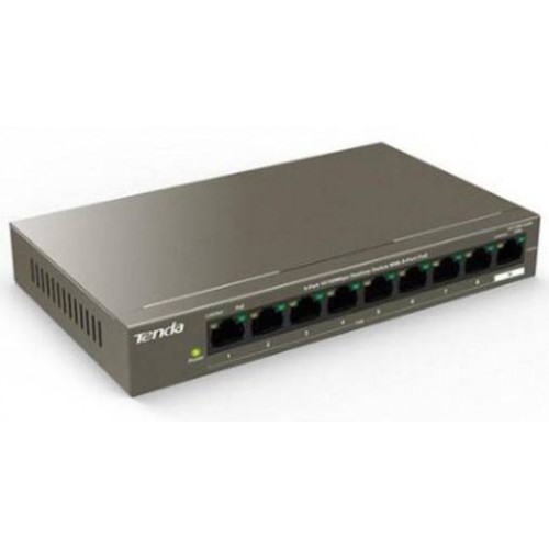 Tenda TEF1109P-8-63W Коммутатор неуправляемый PoE, 9 портов, 9x100 Мбит/с, PoE 8х58 Вт, настольный