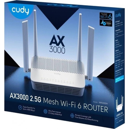 Cudy WR3000H 2,5-гигабитный роутер AX3000, 2,4/5 ГГц, до 2976 Мбит/с, LAN 4x1 Гбит/с, WAN 1x2,5 Гбит/с, 4 антенны, белый