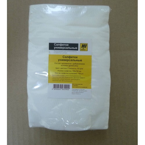 Салфетки универсальные чистящие безворсовые Hi-Black, пачка/100шт (10*15см) арт.:220824