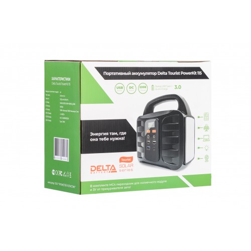 Портативная зарядная станция DELTA Tourist P115 с возможностью заряда от солнечных модулей, автомобильного прикуривателя и сети 220 В.
