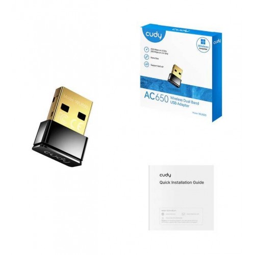 Cudy WU650 2.0 Компактный USB-адаптер Wi-Fi AC650, 2,4/5 ГГц, до 633 Мбит/с, сверхкомпактный корпус, USB 2.0