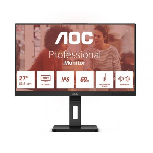 МОНИТОР 27" AOC U27E3UF Black с поворотом экрана (4K, IPS, 3840x2160, 4 ms, 178°/178°, 350 cd/m, 1000:1, +2xHDMI 2.0)