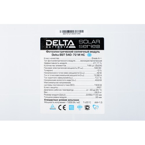DELTA серии BST являются фотоэлектрическими модулями, выполненными из материалов экстра-класса. При невысокой интенсивности солнечного излучения, Delta BST вырабатывают больше электроэнергии, чем стандартные солнечные модули с аналогичными характеристиками. Модули Delta BST проходят 74 точки контроля качества, в том числе двухэтапный EL тест до и после ламинации. Delta BST – это высокая производительность и долговечность.