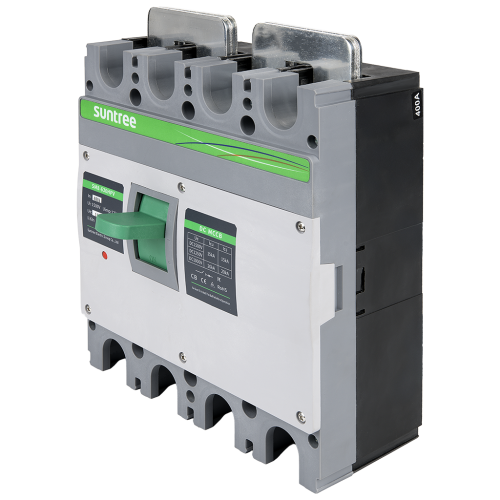 MCCB DC 1500V 4P 400A - четырёхполюсный автоматический выключатель постоянного тока в литом корпусе. Максимальный ток 400 ампер, напряжение 1500 вольт. Применяется в качестве защитного оборудования в составе солнечных электростанций. Также может применяться для размыкания цепи постоянного тока аккумуляторных сборок с соответствующим номиналом по току и напряжению.